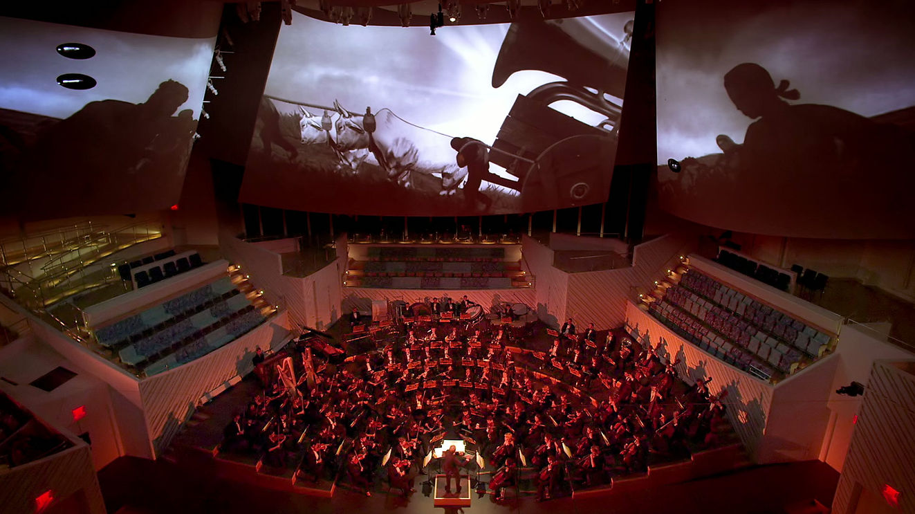 5-screen animated visualization for live orchestra